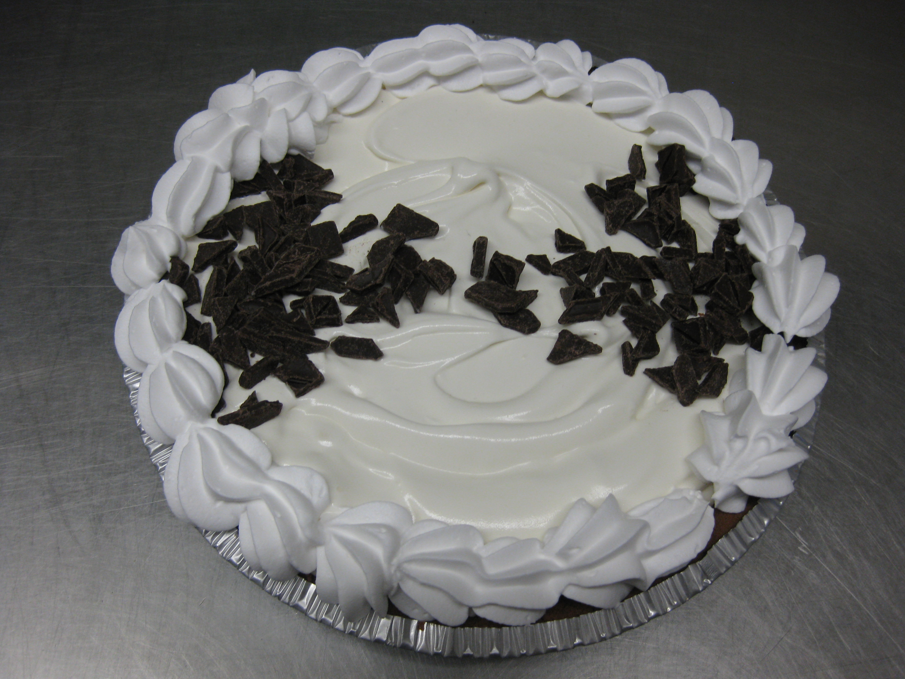 Chocolate Chip – Chocolate pie crust with vanilla ice cream with a bowtie of chocolate chips and whipped cream.