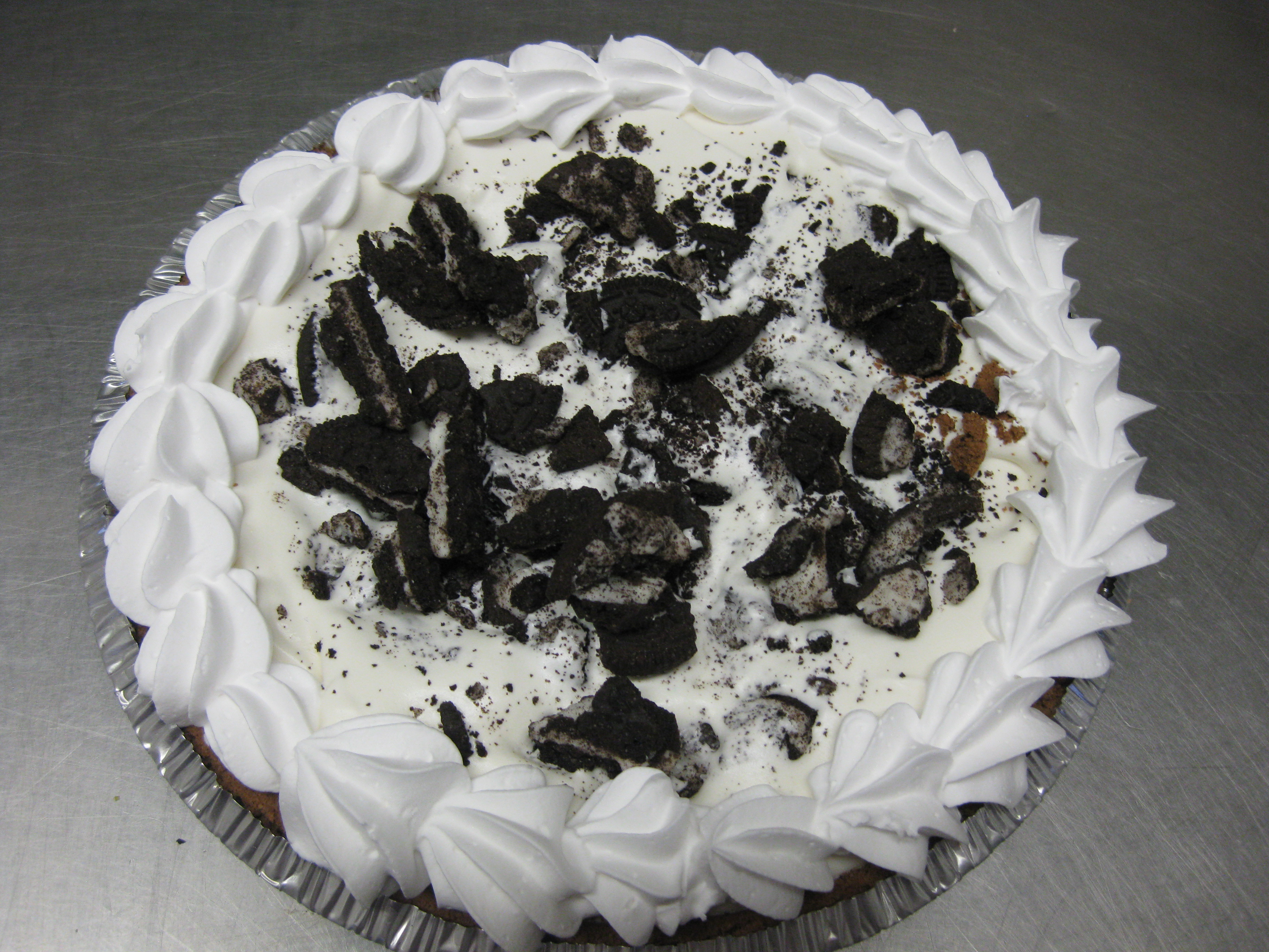 Oreo – Chocolate Oreo pie crust filled with cookies and cream ice cream topped with MORE oreos and whipped cream.